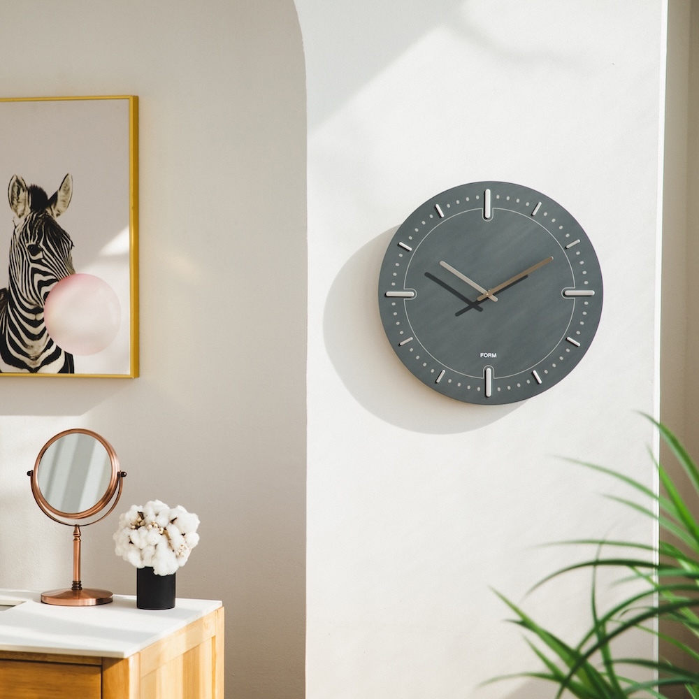 在大人感的居所中,掛鐘不該只是提醒時間的工具,更是定調空間氣氛的「底氣」。FORM 的《底蘊》系列,以磨鋁質感立體時標,摒棄了複雜的數字標示,以點式分鐘標記與線圈勾勒,形成層次鮮明的閱時指引,讓看時間這件事變得從容。