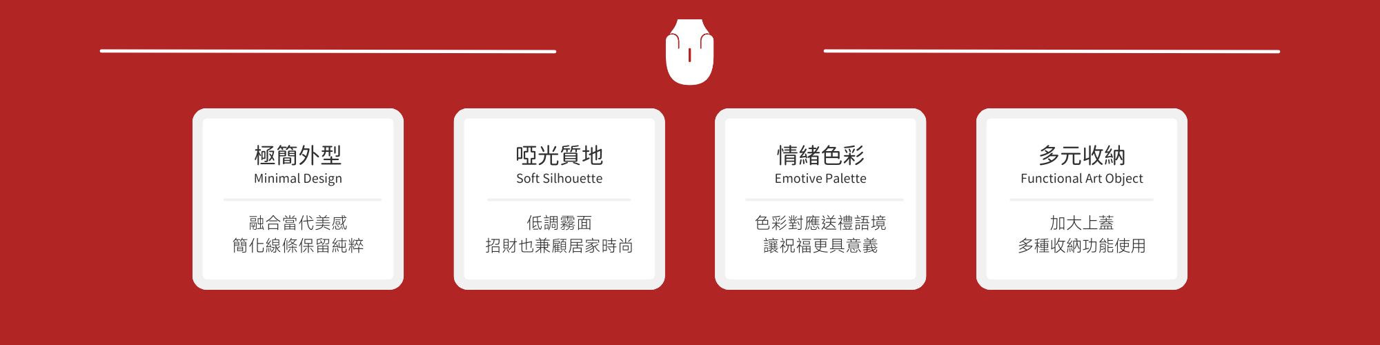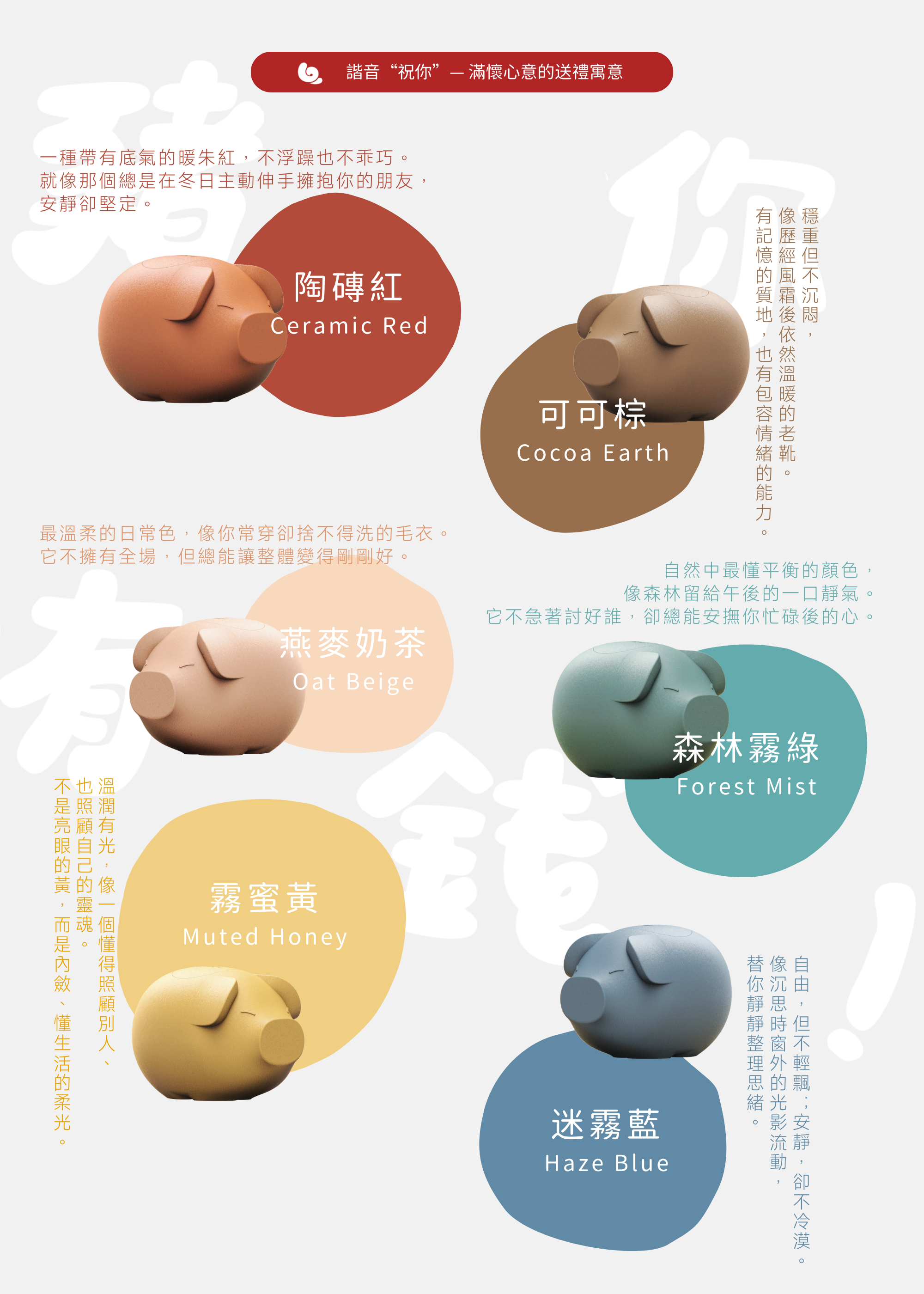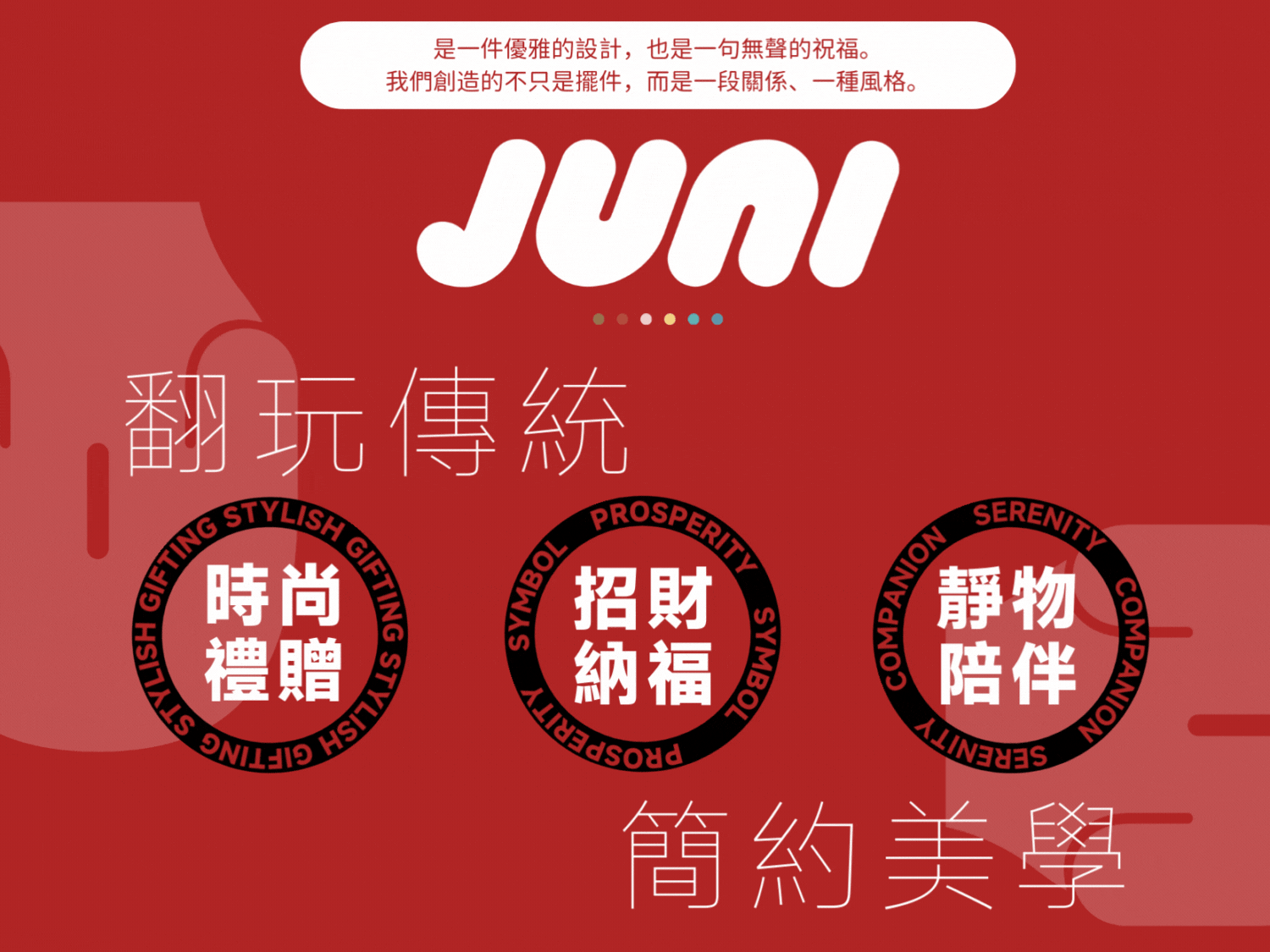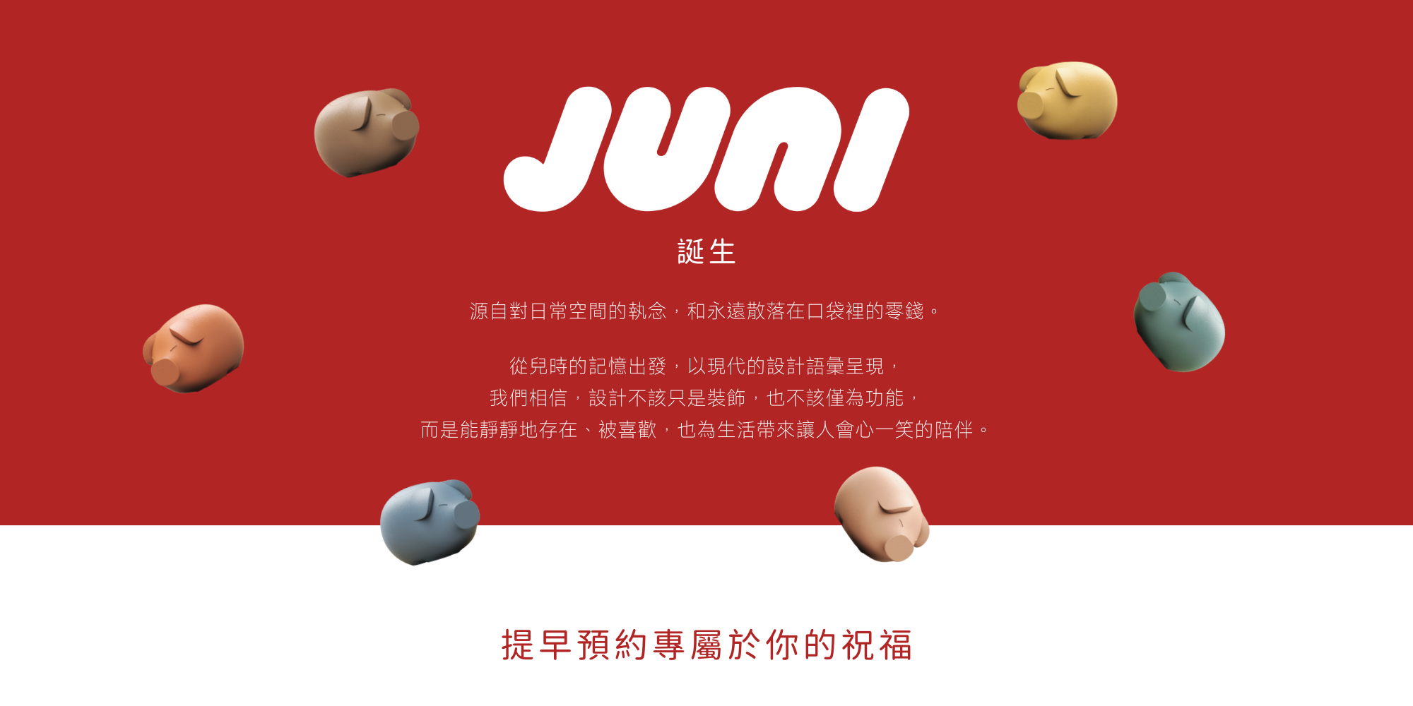 「JUNI」(祝你)擁有滿懷心意的送禮寓意,翻玩傳統小豬的極簡外型,簡化線條的同時保有圓潤豐滿,擁有招財意象也兼顧居家時尚。