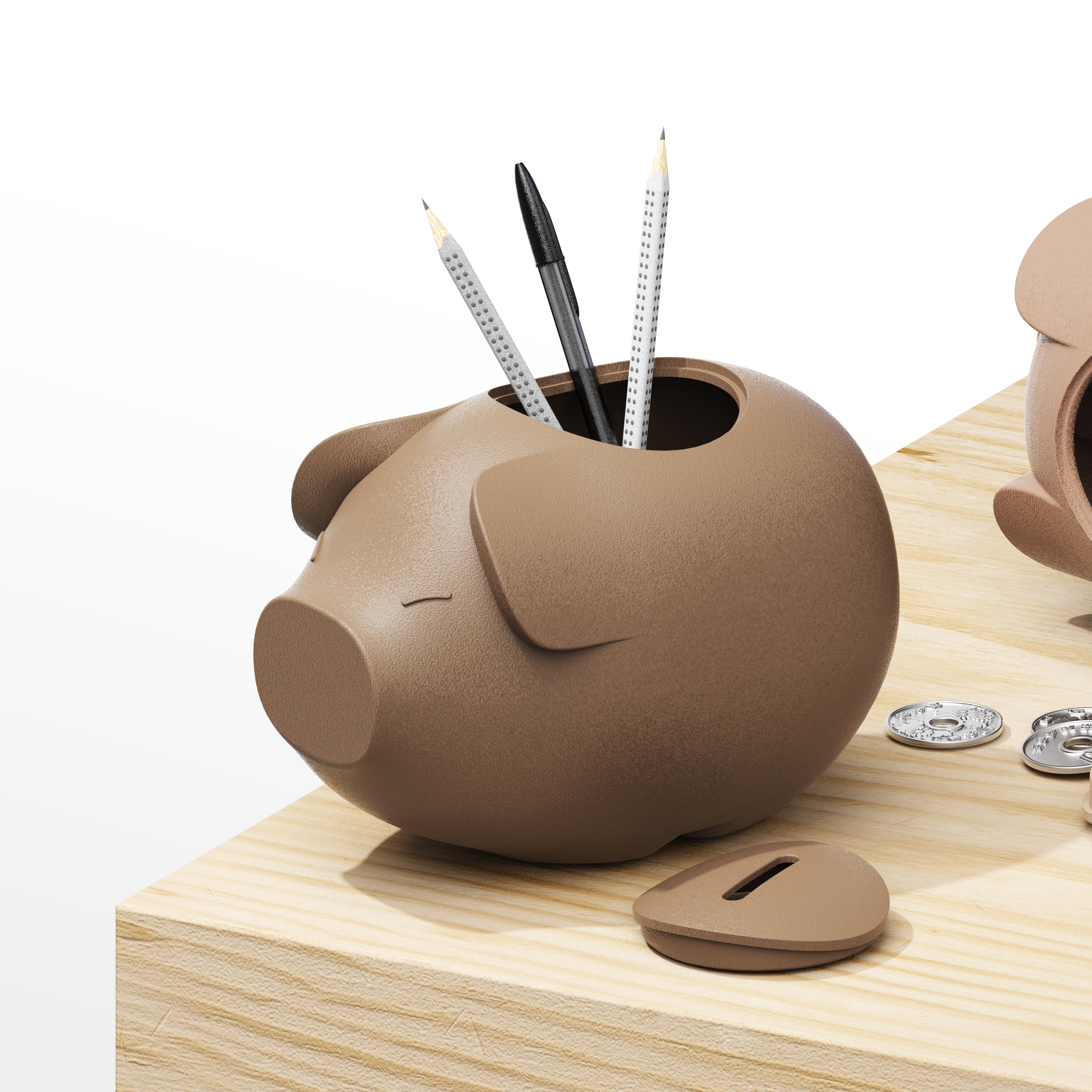 加大的寬口上蓋可打開,除了存錢之外,還可作為筆筒等多種收納功能使用。
