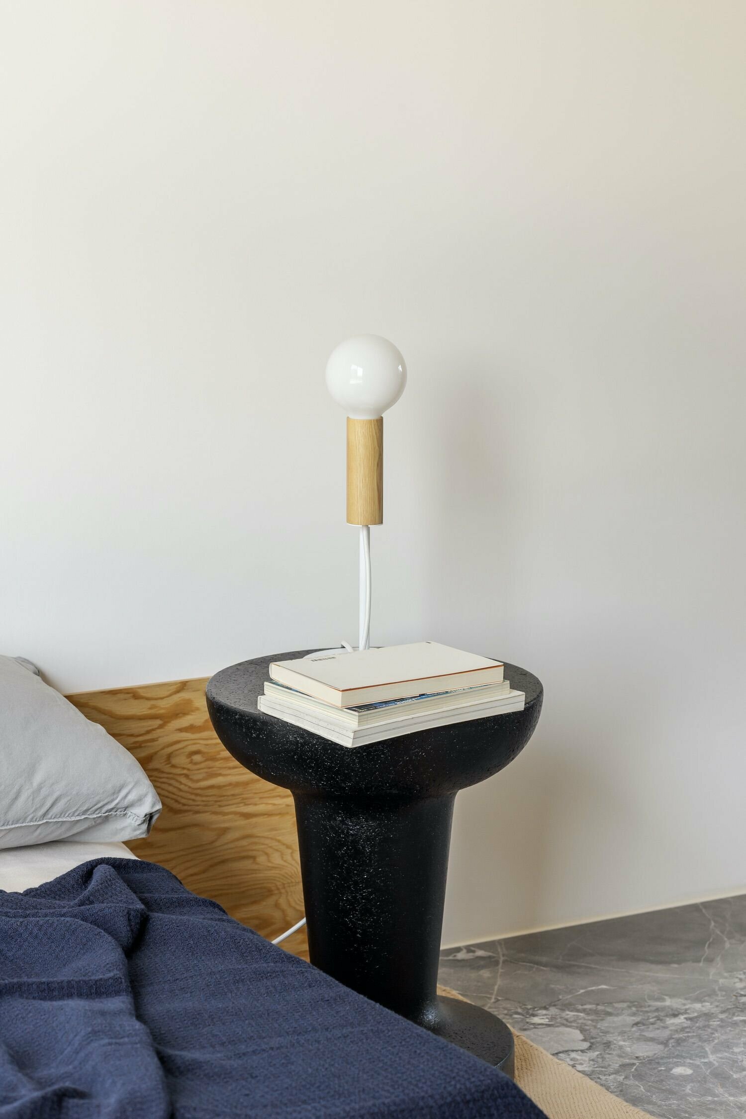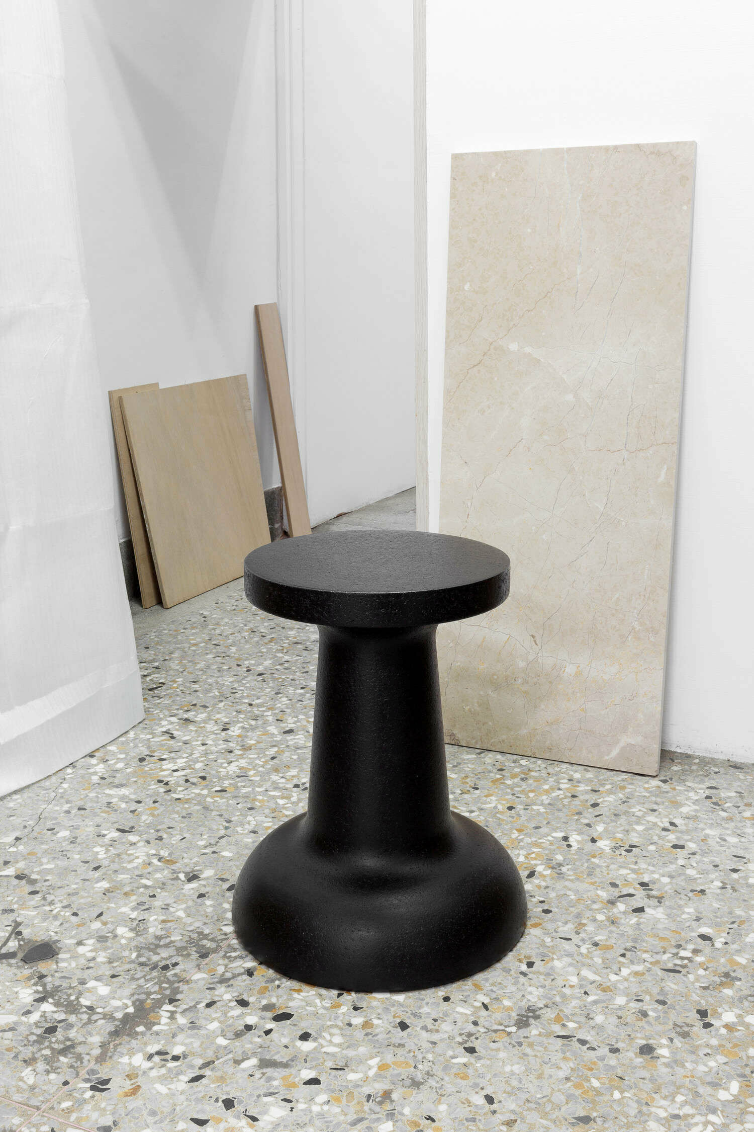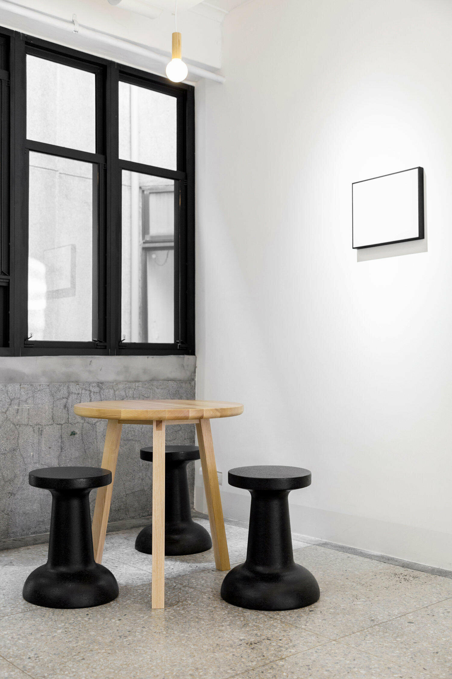 PUSHPIN 兩用桌凳的外型靈感來自於辦公室必備文書用品圖釘,既是凳子也可以作為矮桌,可配合空間需求,彈性運用。軟木塞材質來自於可不斷重複再生達200 年的橡樹樹皮,不僅環保,還擁有防水、防火等特性,此產品也可作為室外傢俱之用。