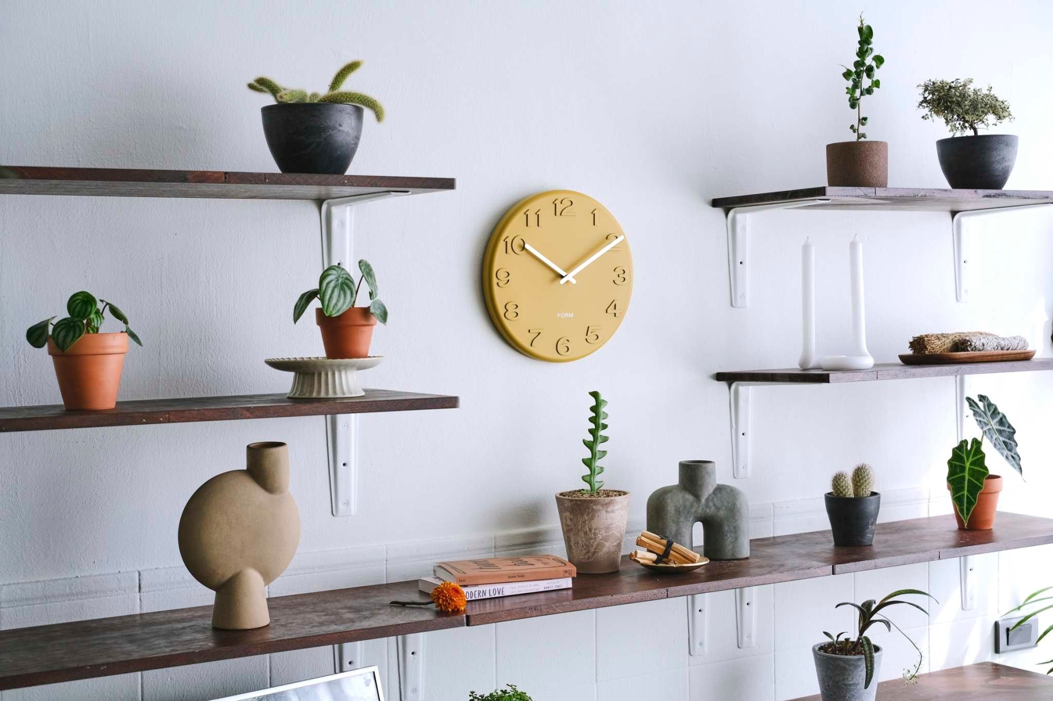 多色一體成型圓盤時鐘 時鐘以一體成型的單一鐘盤搭配立體浮凸數字,除了提升時間辨識性,更讓整體視覺感受更為舒適恬靜,也特別加入莫蘭迪色系,為空間注入豐富色彩,迎來新氣象。